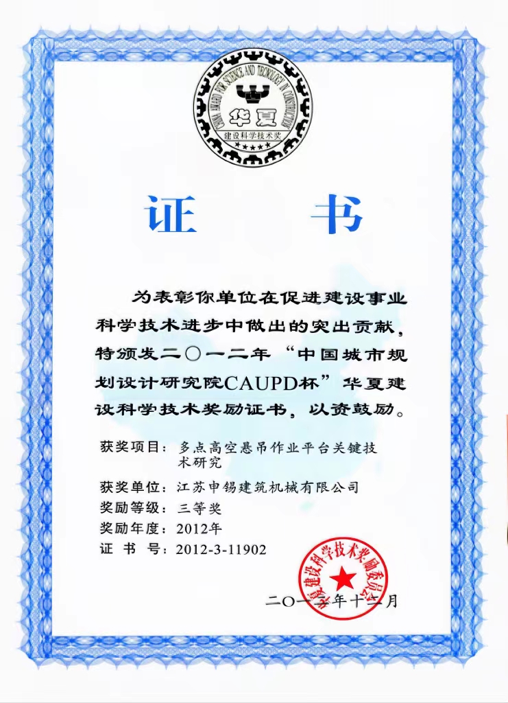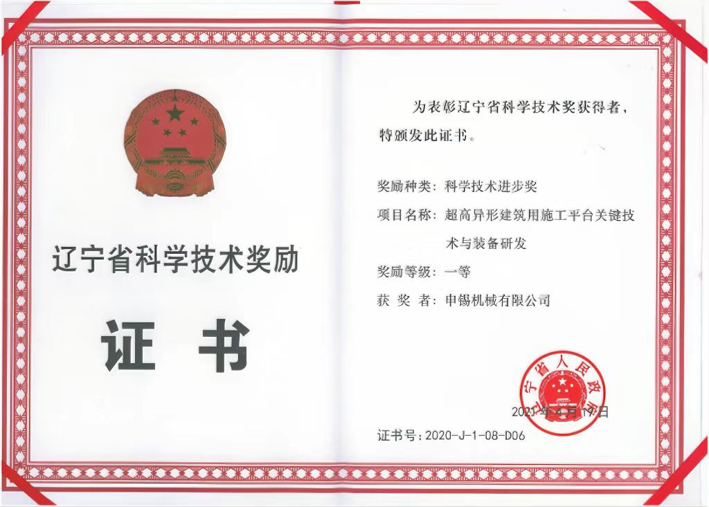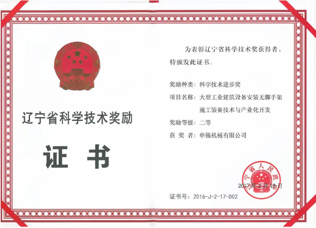 這次合作奠定了申錫企業(yè)與沈陽建筑大學(xué)之間的校企合作走深走實,之后企業(yè)先后參加了國家“十二五”、國家“十三五”等科研任務(wù)的聯(lián)合研制,雙方共同的努力換來了碩果累累,完成的"大型工業(yè)建筑設(shè)備安裝無腳手架安裝作業(yè)裝備技術(shù)研究與產(chǎn)業(yè)化開發(fā)"獲得2016年遼寧省科學(xué)進步二等獎,完成的“超高建筑維修起重平臺關(guān)鍵技術(shù)研發(fā)與產(chǎn)業(yè)化” 獲得2019年的華夏建設(shè)科學(xué)技術(shù)獎,完成的“超高異形建筑用施工平臺關(guān)鍵技術(shù)與產(chǎn)業(yè)化” 獲得2020年遼寧省科學(xué)進步一等獎……成績的獲得離不開科研人員的努力,更離不開學(xué)校及校領(lǐng)導(dǎo)多年來對申錫的支持和幫助。
